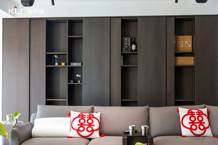 在儲物柜的設(shè)計上,客來福家居設(shè)計師也根據(jù)屋主生活習(xí)慣進(jìn)行細(xì)節(jié)的構(gòu)想。