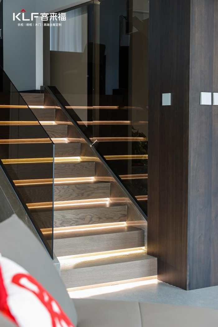 頂層的儲物間柜體融入書桌、隱藏式燈帶等要點,功能與美觀兼得;感應(yīng)式樓梯會隨著步伐漸亮,不起眼的設(shè)計卻追隨著你每一個追光的腳步,治愈感滿分。