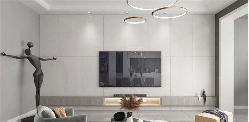 其中科技直紋與蘭迪米灰進(jìn)行有機(jī)的交錯(cuò)組合,讓空間更具動(dòng)態(tài)感、層次感和藝術(shù)感,提升客廳活動(dòng)的生活品質(zhì)。