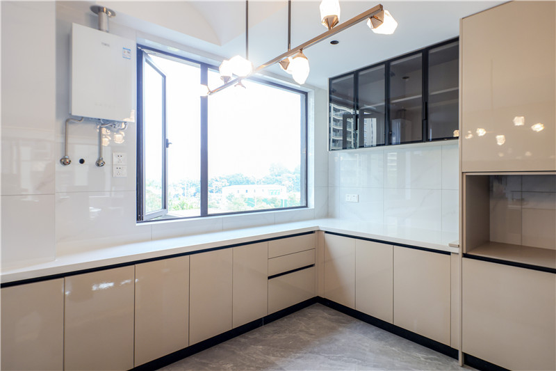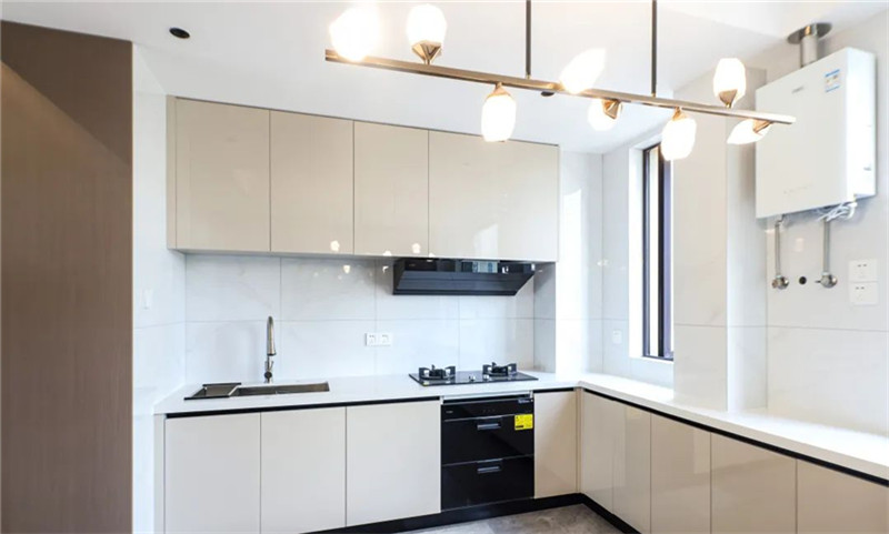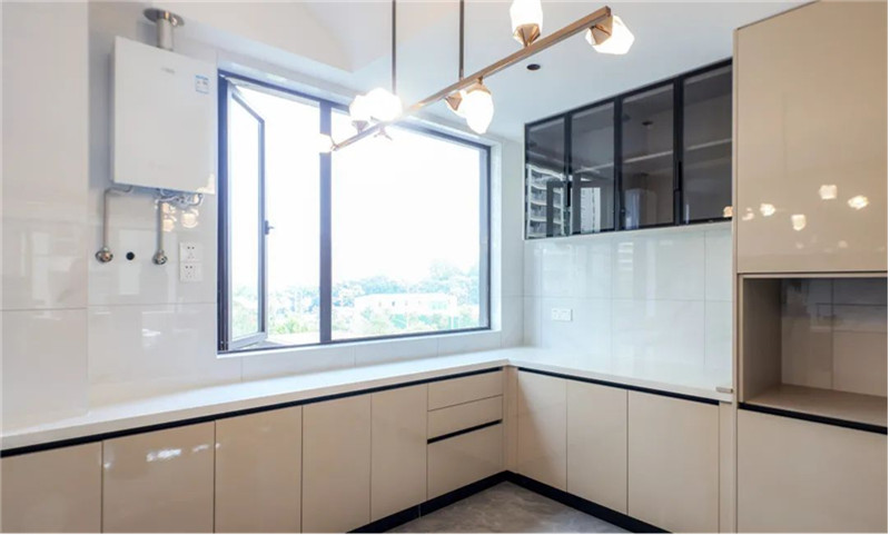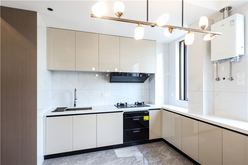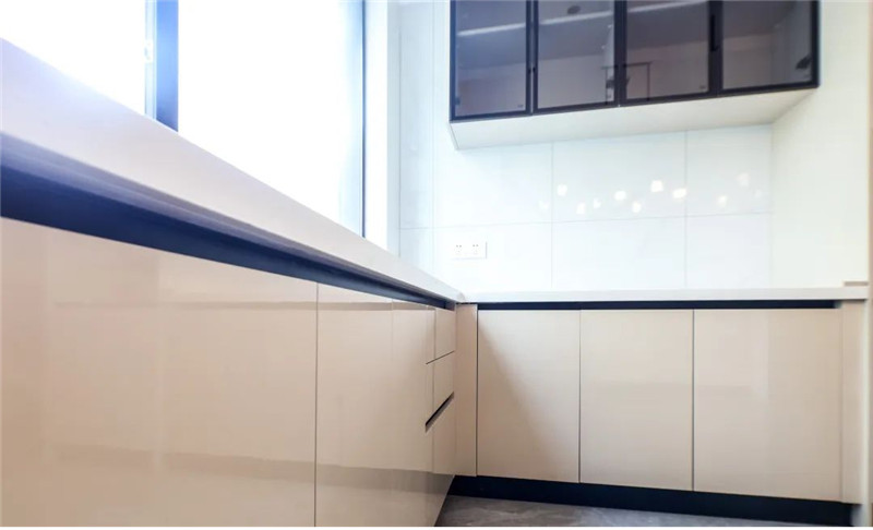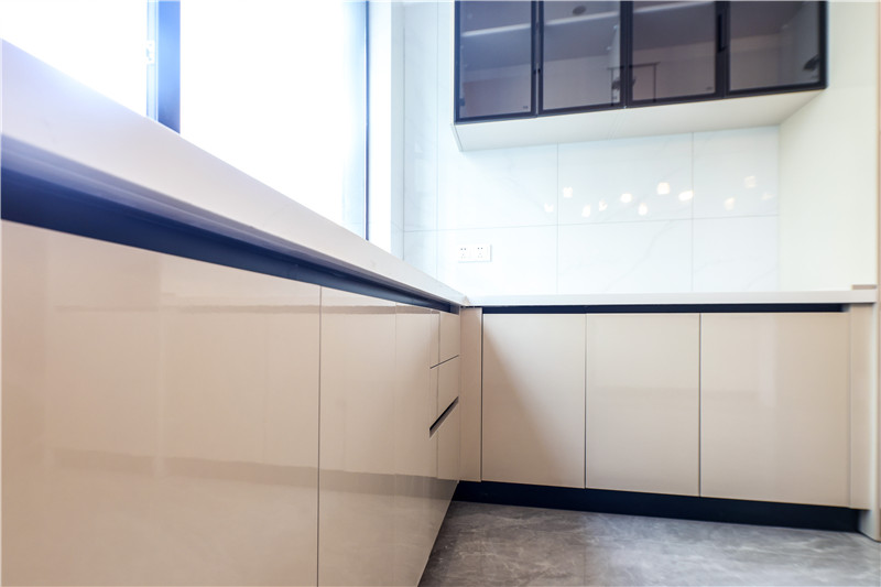 U型櫥柜設(shè)計(jì),合理利用空間,將收納發(fā)揮至理想狀態(tài);廚房常見(jiàn)的免拉手設(shè)計(jì)提高整體顏值,既簡(jiǎn)約舒適,又實(shí)用安全。
