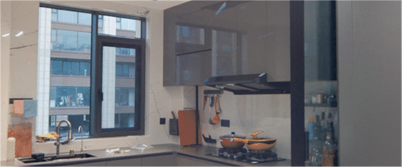 廚房U型構造,根據墻體布局而建,洗切烹盛的動線提升便捷度。