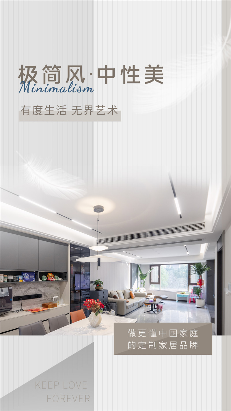 極簡風裝修包容性強,給空間帶來更多的搭配可能性,本戶案例推敲整體到局部細節(jié),為屋主打造出簡約美意空間。