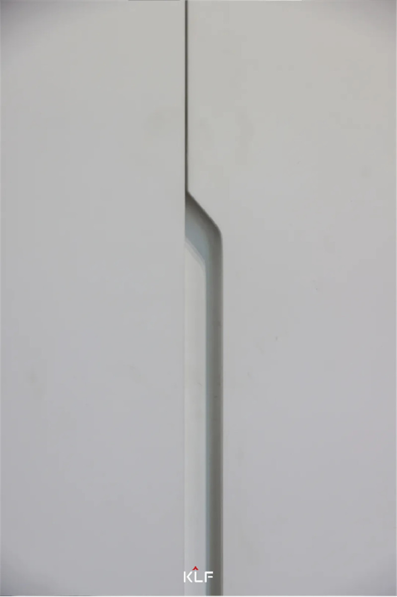 科技直紋背景墻與白色巖板餐桌的碰撞