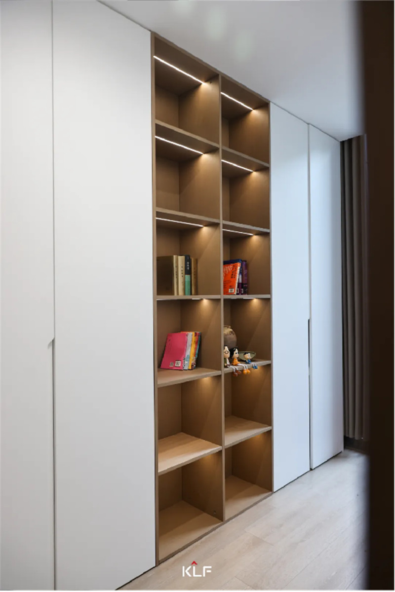 在電視背景墻對(duì)側(cè)做了整面收納柜
