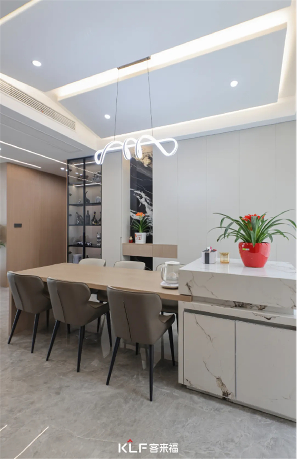 餐桌吧臺(tái)采用巖板材質(zhì)設(shè)計(jì)