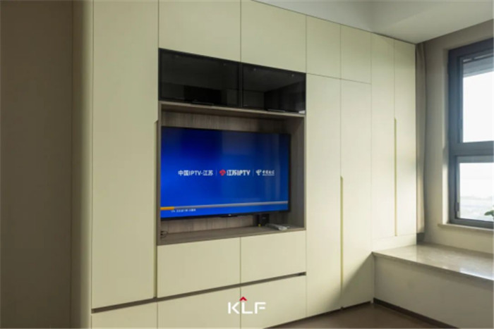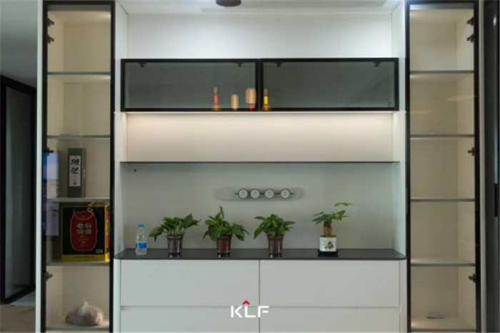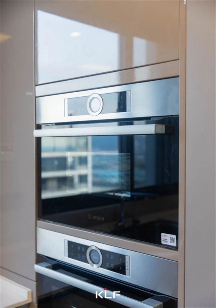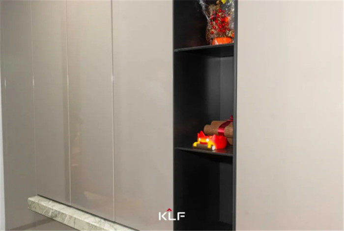 折射著瑩潤光澤的水漆門板搭配隱藏式拉手和內(nèi)嵌把手,外觀簡約大氣,于實用內(nèi)核中賦予空間獨特的型格。