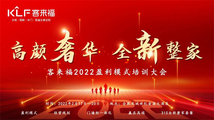 2022年2月17日-20日為期四天,以“高顏奢華,全新整家”為主題的客來福2022盈利模式培訓(xùn)暨3.15活動(dòng)啟動(dòng)大會(huì)在安徽合肥圓滿落幕,是對(duì)既往奮斗歲月的總結(jié),也是奮斗新征程的開啟。在2021年作出突出貢獻(xiàn),業(yè)績(jī)輝煌的經(jīng)銷商在這里不僅得到表彰和肯定,也對(duì)未來的發(fā)展收獲了信心,希望在全新戰(zhàn)略格局的帶領(lǐng)下,以創(chuàng)新融合的發(fā)展思維和專業(yè)奮進(jìn)的心態(tài)共同開啟客來福品牌未來新篇章,讓我們勠力同心,一起聚勢(shì)謀遠(yuǎn),共展虎年宏圖!