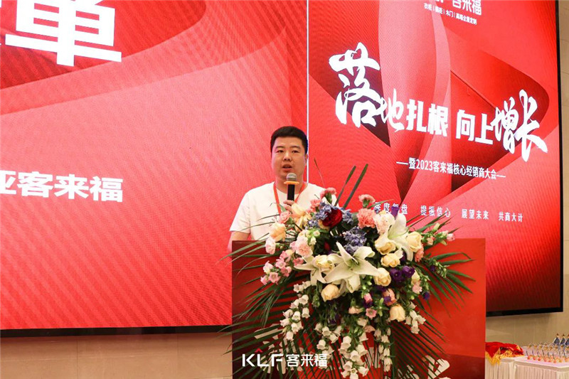 隨后特邀嘉賓吳慶陽老師、客來福·革物營銷總經(jīng)理徐超、運營副總梅杰、創(chuàng)新副總尹其兵,進(jìn)行對應(yīng)的相關(guān)產(chǎn)品與政策講解,幫助核心經(jīng)銷商家人深入了解客來福新產(chǎn)品與政策規(guī)劃,從而在一線市場獲得強有力的競爭力。