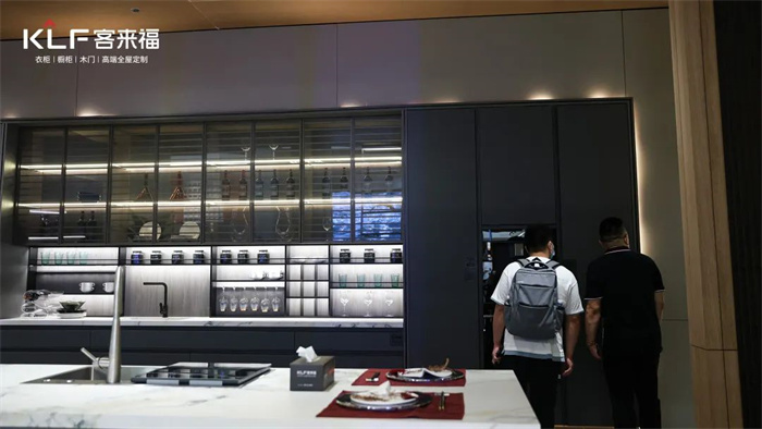 在布局方面,展廳分為廚房、餐廳、客廳、臥室等八大空間,以低飽和度的紅色為基調(diào),實(shí)木和金屬相互映襯,同時(shí)堅(jiān)持產(chǎn)品設(shè)計(jì)在造型、線條、質(zhì)感上的干凈利落和客來福獨(dú)特的烤漆工藝,以低調(diào)細(xì)膩的環(huán)保材質(zhì)、色彩體現(xiàn)出本身雋永的美麗,客來福更懂得中國人們生活方式的當(dāng)代設(shè)計(jì),演繹極簡、輕奢國潮的家居生活。