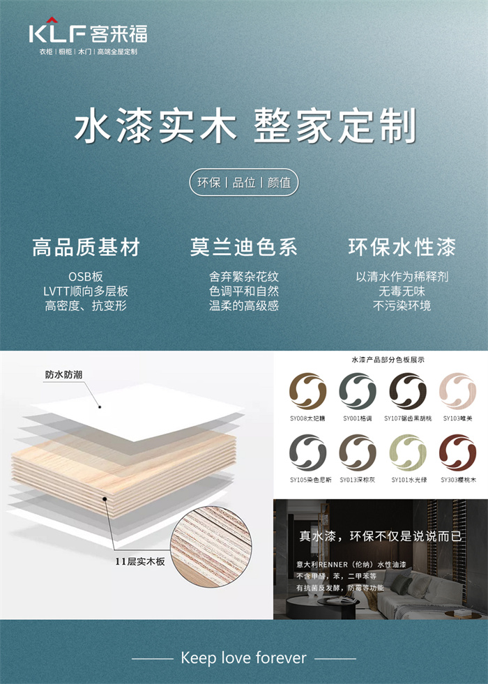 客來福家居,二十年堅持走可持續(xù)化道路,不斷研發(fā)更多適合中國家庭的定制家居產(chǎn)品。我們將緊抓宅經(jīng)濟風口,從用戶體驗出發(fā),用智慧設計持續(xù)打造更健康更高端更舒適的家居生活空間。選擇客來福家居,讓“宅”變得更美好!