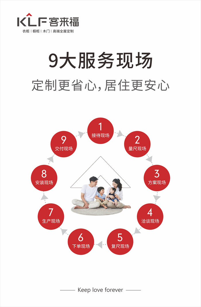 客來福家居扎根家居行業(yè)二十年,從單一家具產(chǎn)品到實現(xiàn)全屋定制,客來福用產(chǎn)品和服務(wù)說話,開辟了一條屬于自己的發(fā)展之路。在發(fā)展過程中客來福不忘初心,將“締造幸福家居生活,讓愛無界”作為企業(yè)愿景,為更多中國家庭定制幸福家居生活。