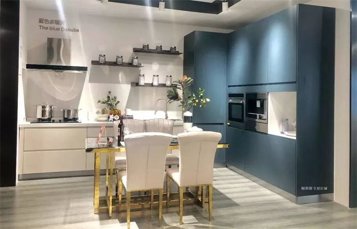 2019年,客來福在展會上發(fā)布了雅奢新品、斯里蘭卡等多個家居新品,輕奢的設(shè)計風格與客來福高端定制的理念高度吻合。藍色多瑙河系列采用三分光烤漆工藝,啞光效果質(zhì)感高級,讓空間變得靈動自然。于細節(jié)之處彰顯客來福的設(shè)計研發(fā)能力,讓用戶輕松享受高端雅致生活。