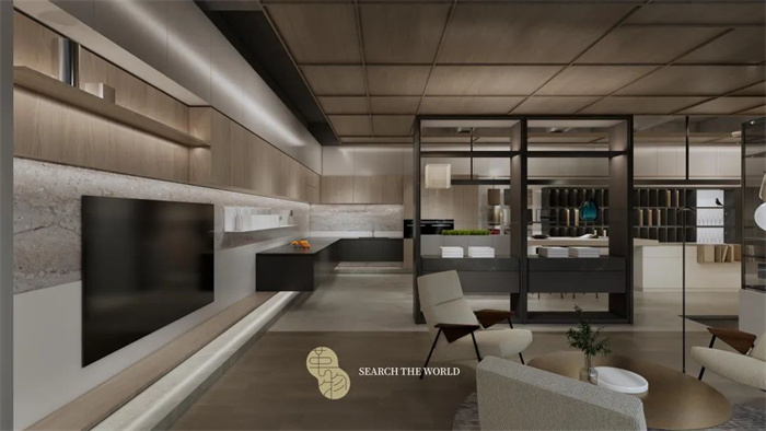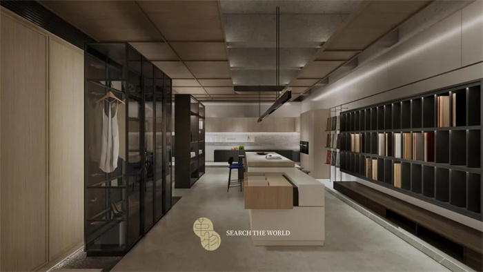 在空間布局上,整體設計從現(xiàn)代人居出發(fā),可根據(jù)不同的受眾人群定制個性化的家居產品,例如潮鞋柜、手辦柜、古玩架,酒柜、寵物舍、茶室等,讓家居空間承載更多私人定制的夢想。