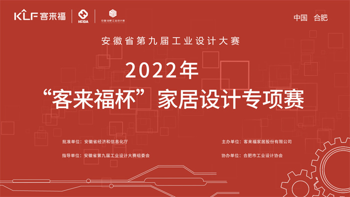 安徽省第九屆工業(yè)設(shè)計大賽“客來福杯”家居設(shè)計專項賽是經(jīng)安徽省經(jīng)濟(jì)和信息化廳批準(zhǔn),在安徽省第九屆工業(yè)設(shè)計大賽組委會等單位的指導(dǎo)、監(jiān)督下,由集研發(fā)、銷售、生產(chǎn)、售后于一體的大規(guī)模個性化定制家居品牌客來福家居股份有限公司主辦的工業(yè)設(shè)計比賽。