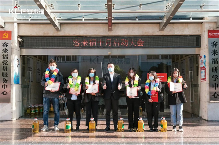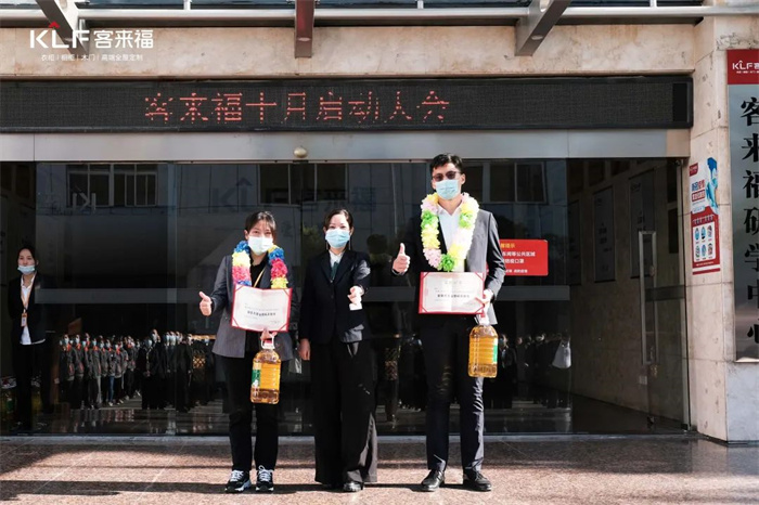 在客來(lái)福的平臺(tái)上,有付出,就一定會(huì)有收獲。本次啟動(dòng)大會(huì)上還對(duì)九月取得優(yōu)秀成績(jī)的員工們進(jìn)行了表彰,向其頒發(fā)榮譽(yù)證書以及豐厚的禮品、獎(jiǎng)金等。