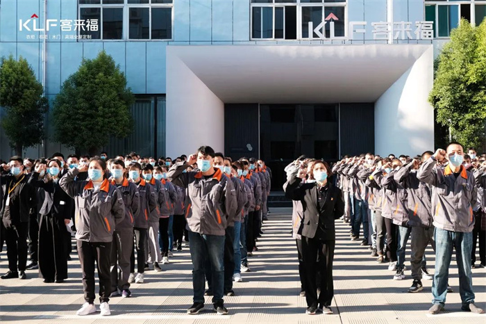 首先進(jìn)行的是升國(guó)旗奏國(guó)歌儀式,客來(lái)福家居作為民族企業(yè),始終堅(jiān)決地將愛(ài)國(guó)擁黨作為企業(yè)發(fā)展的首位。在飄揚(yáng)的旗幟下,客來(lái)福全員進(jìn)行企業(yè)價(jià)值觀宣讀,客來(lái)福家人們將通過(guò)不懈努力和精進(jìn)合作,實(shí)現(xiàn)品牌發(fā)展的美好愿景。