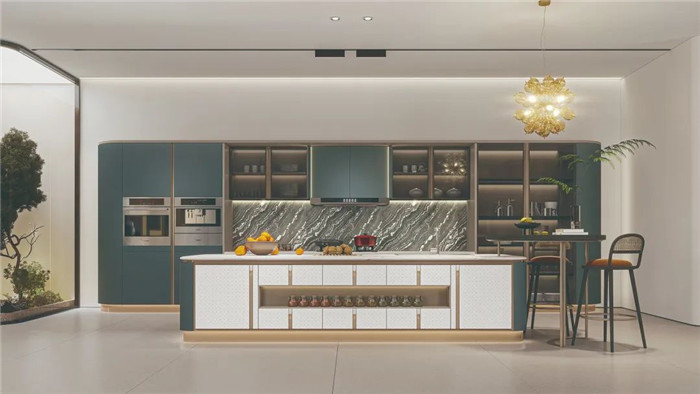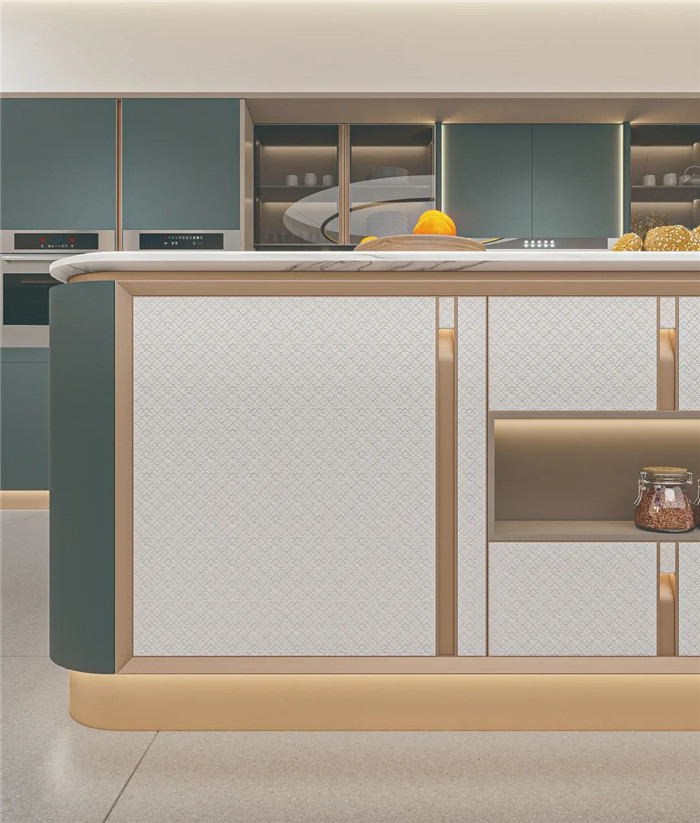 采用圓弧包邊設(shè)計(jì),將圓弧貫穿整套產(chǎn)品,勾勒溫潤(rùn)柔和質(zhì)感。免拉手燈柱和鋁合金燈帶,盡顯高貴與優(yōu)雅。既富有意式侘寂的設(shè)計(jì)風(fēng)尚,也是對(duì)今年高定流行元素的創(chuàng)新性結(jié)合。