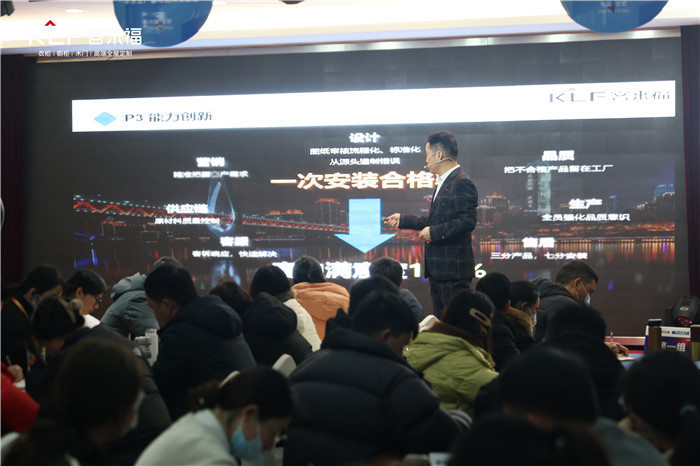 通過四個自信,尹董提煉了“高端”“幸?!薄胺铡薄跋嘈拧彼膫€關鍵詞,讓員工明晰了自己的工的重點及創(chuàng)新發(fā)力點。戰(zhàn)略的制定是為了落地,尹董說到2023年是客來福的戰(zhàn)略執(zhí)行年,需要通過組織變革、模式創(chuàng)新、能力創(chuàng)新等環(huán)節(jié)打通營銷各環(huán)節(jié),助力經銷商快速就業(yè)。