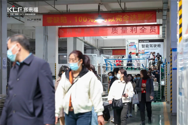 參觀的第一站,領(lǐng)導(dǎo)一行在魏總的帶領(lǐng)下來到了客來福家居4.0智能化生產(chǎn)車間。參觀過程中,魏總向大家講述了客來福家居4.0智能化體系的深度布局,領(lǐng)導(dǎo)們與社員們實看實感后他們紛紛表示智能化、數(shù)字化將會是未來企業(yè)發(fā)展的重中之重,并對客來福家居的產(chǎn)業(yè)模式表示了贊同與認(rèn)可。