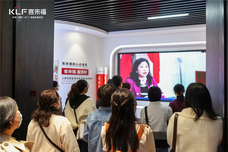 在魏總的帶領(lǐng)之下,來訪的領(lǐng)導(dǎo)與社員們來到了展廳內(nèi)的黨建文化處,在這里通過講解與視頻播放相結(jié)合的形式加深了大家對客來福家居「12358黨建文化」的了解。20年來,客來福家居一直以幸福為核心制定黨建文化工作綱領(lǐng),積極推進(jìn)各項文化建設(shè),推動黨建工作與企業(yè)發(fā)展的融合互促,為中國特色社會主義事業(yè)貢獻(xiàn)力量。