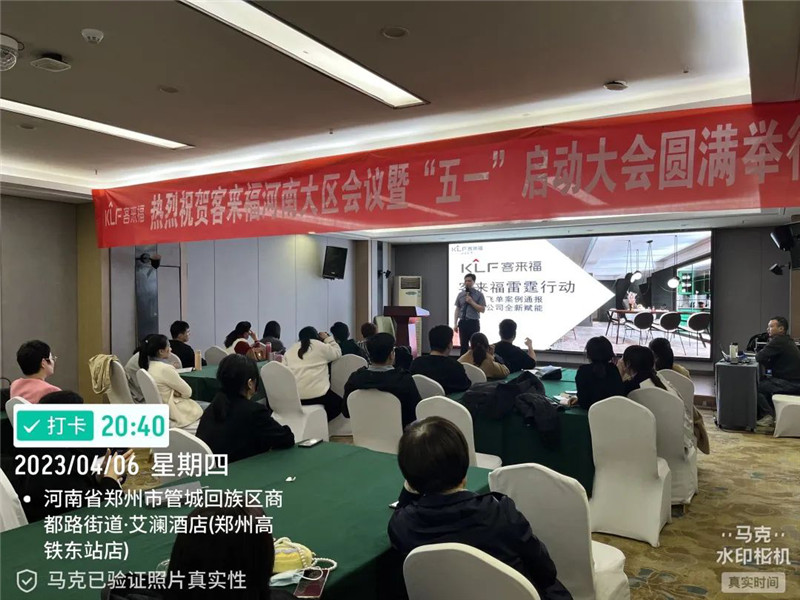 2023年4月6日至4月8日,客來福河南大區(qū)會議暨“五一”啟動大會于河南鄭州圓滿舉行,客來福家居營銷決策委員會副總梅杰、經(jīng)營部副部長黃志永、鐵三角運營總監(jiān)高翔、設(shè)計督導(dǎo)主管孫文波、品牌部劉天翼、運營部張辭、河南大區(qū)經(jīng)銷商及員工們共同參與本次河南啟動會。