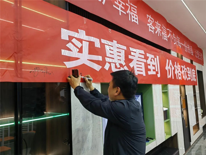 2023年5月8日—5月14日,客來福運營督導(dǎo)劉杰、殷賢旗走進(jìn)甘肅隴西客來福店,和店面老板、銷售人員、設(shè)計人員一起開展“實惠看得到,價格砍到底”主題活動。