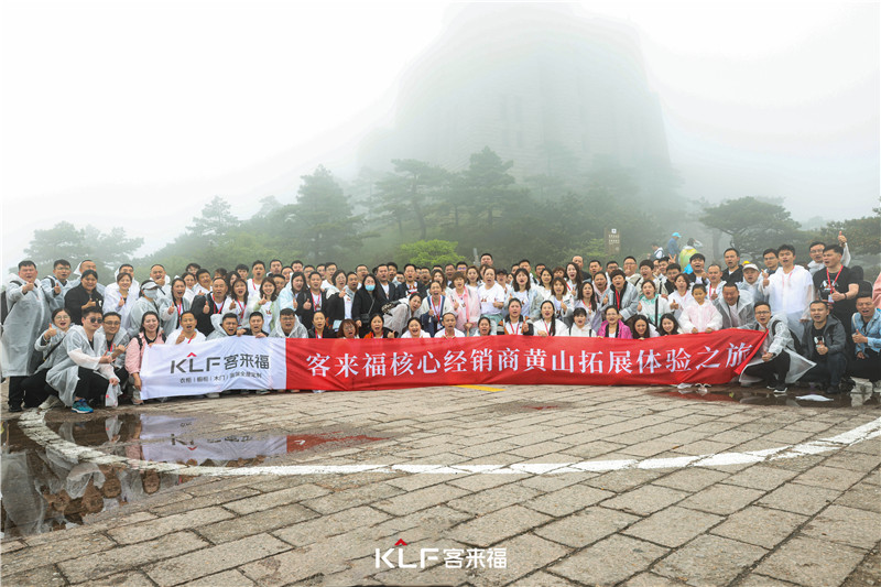 在經(jīng)過(guò)三天的頭腦風(fēng)暴后,18日,客來(lái)福核心經(jīng)銷商一行來(lái)到了黃山風(fēng)景區(qū),尹董和各位家人賞自然美景、看奇松怪石。本次黃山拓展體驗(yàn)之旅,客來(lái)福還帶了幸福生活體驗(yàn)官KK DOG一同登頂。