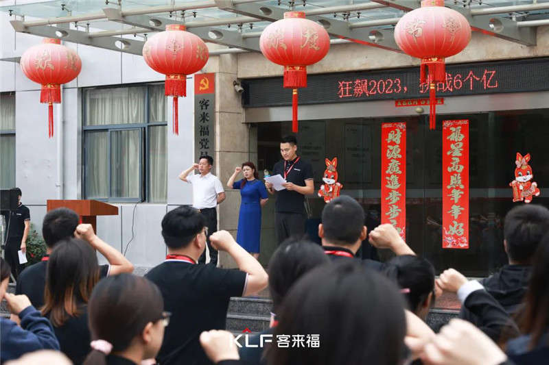 啟動大會首先進行莊嚴的升國旗奏國歌儀式,在國歌聲中客來福全體員工行注目禮。之后,全體員工宣讀企業(yè)文化。
