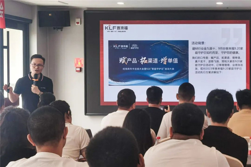隨后,客來福運(yùn)營團(tuán)隊(duì)人員分別上臺進(jìn)行渠道政策發(fā)布以及此次920家庭守護(hù)日活動的深度講解,通過培訓(xùn)讓經(jīng)銷商家人們?nèi)嬲莆沾舜位顒拥牟町惢咙c(diǎn)及升級后的渠道政策,了解新產(chǎn)品的工藝和品牌優(yōu)勢,增強(qiáng)經(jīng)銷商家人們的品牌自信和營銷自信。