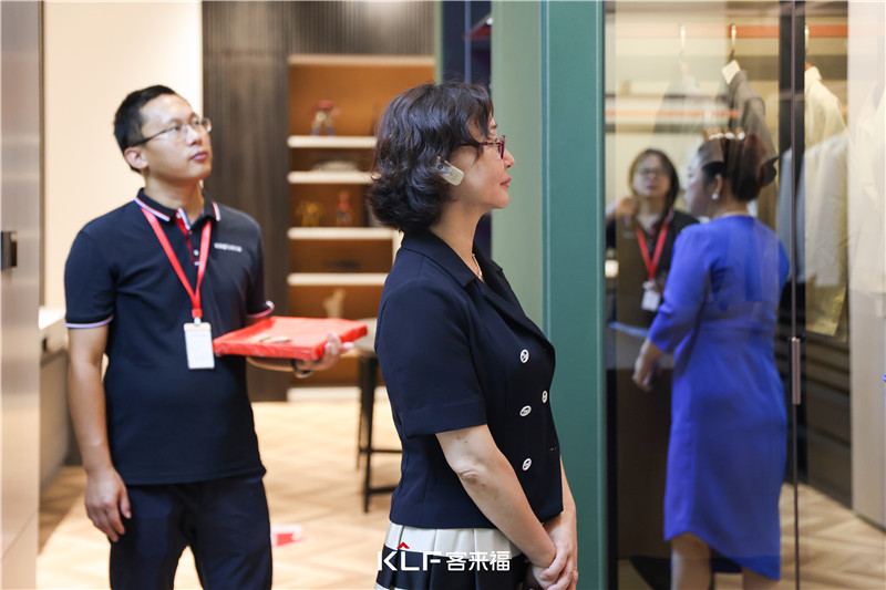 隨后一行人走進(jìn)展廳親看客來福的高定產(chǎn)品,其整體與細(xì)節(jié)的把控,體現(xiàn)出客來福的研發(fā)創(chuàng)新力。
