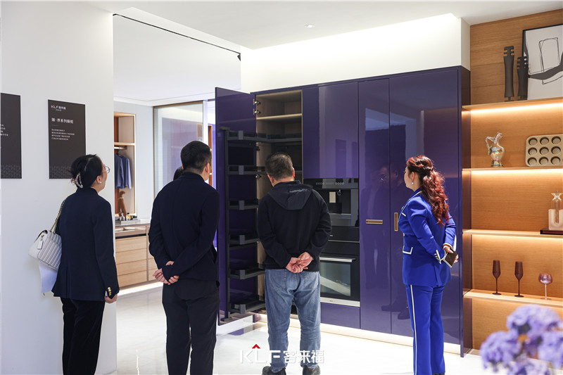 通過客來?,F(xiàn)場工作人員講解展廳產(chǎn)品,體現(xiàn)了客來福對產(chǎn)品的不斷研發(fā)創(chuàng)新,從實際生活出發(fā),充分考慮用戶的使用需求,用現(xiàn)代審美與核心設(shè)計手法,打造更懂中國家庭的定制家居品牌。