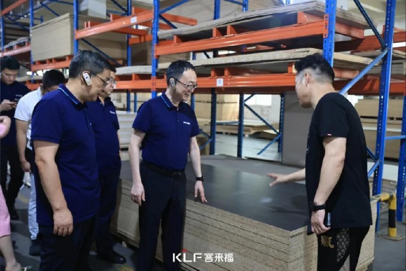 通過實地考察車間運轉(zhuǎn)狀況,領(lǐng)導(dǎo)們對客來福嚴(yán)謹(jǐn)專業(yè)的板材制作工藝流程和系統(tǒng)化、標(biāo)準(zhǔn)化的車間生產(chǎn)流程進行了詳盡了解。