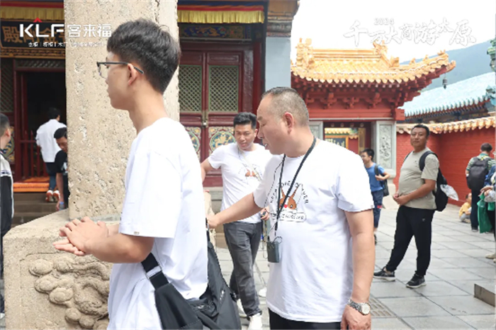 沿途,大家情緒高昂,除了一路欣賞壯麗風(fēng)景,還一起參觀了眾多古老的寺廟。在裊裊梵音與莊嚴(yán)佛像前,大家不約而同地放慢了腳步,五爺廟虔誠上香,塔院寺繞塔祈福,感受佛教文化的博大精深,享受心靈的朝圣與凈化。會當(dāng)凌絕頂,一覽眾山小。本次五臺山拓展體驗之旅,客來福還帶了幸福生活體驗官KK DOG一同登頂。