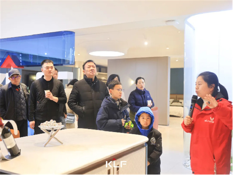 在工作人員的陪同解說下,老客戶一行開啟了展廳參觀之旅。置身人居和諧的高級場域,大家一起沉浸式體驗家居美學新境界,近距離實看實感客來福的多元化產(chǎn)品體系和精湛工藝,收集所有關(guān)于家的靈感。