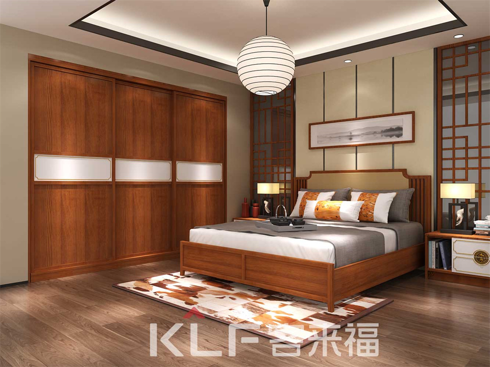 鏤空隔斷,寫實亦寫意,傳達著中式文化的底蘊。木地板裝修,讓臥室休息空間溫度更加適宜。側(cè)邊木質(zhì)衣柜,以木色調(diào)襯托整體空間,也讓家里的衣物存儲不用費心。